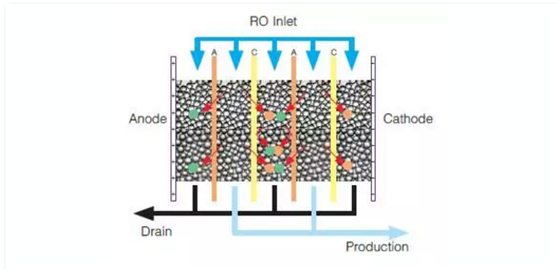 模塊中的離子交換樹(shù)脂通過(guò)電流可持續(xù)再生,無(wú)需化學(xué)品處理