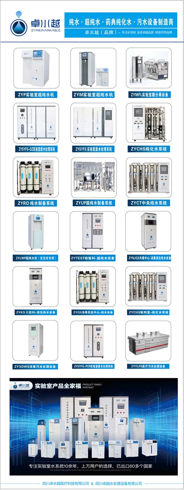 四川卓越水處理設備有限公司(新公司:四川卓水越醫(yī)療科技有限公司)成立于2012年,是一家集研發(fā)、生產(chǎn)、銷售、售后為一體的綜合性水處理廠家,專業(yè)研發(fā)生產(chǎn)實驗室超純水系統(tǒng)、醫(yī)療純水系統(tǒng)、藥典純化水系統(tǒng)、工業(yè)超純水系統(tǒng)、商用純水系統(tǒng)、廢水處理系統(tǒng)、膜分離系統(tǒng)及相關水處理系統(tǒng),目前公司在四川成都,擁有4000M2現(xiàn)代化的生產(chǎn)基地和營銷服務中心,并在全國各省份建立了完善的售后服務網(wǎng)點。