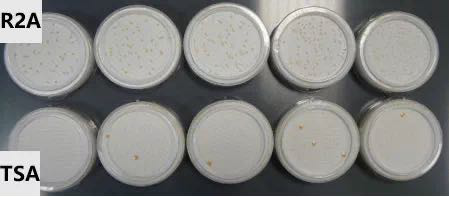 實(shí)驗(yàn)結(jié)論:純水中細(xì)菌培養(yǎng)用培養(yǎng)基推薦(R2A vs TSA) R2A。