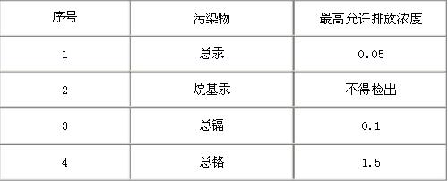 表1 第一類污染物最高允許排放濃度 單位:mg/l