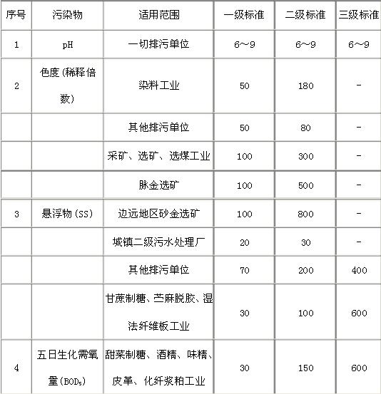 表2 第二類污染物最高允許排放濃度 (1997年12月31日之前建設(shè)的單位) 單位:mg/L