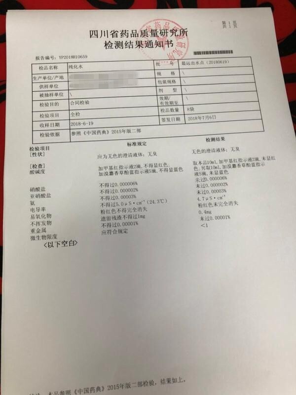 第三方水質(zhì)檢測(cè)資料如下: