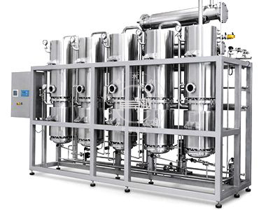 多效蒸餾設(shè)備采用列管式熱交換“閃蒸”使原料水生成蒸汽,同時(shí)將純蒸汽冷凝成注射用水。